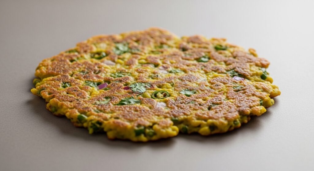 Besan cheela is created through the combination of gram flour and water which produces a base that cooks together with various vegetables. The dish cooks rapidly while requiring minimum oil consumption which makes it an ideal lunch choice for health-conscious individuals.