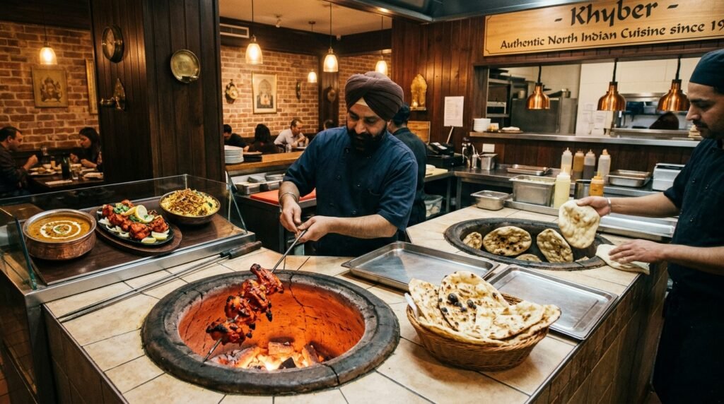 Khyber Restaurant offers North Indian dishes which are made through traditional cooking methods. The use of tandoor ovens provides authentic flavor which strongly enhances the food.