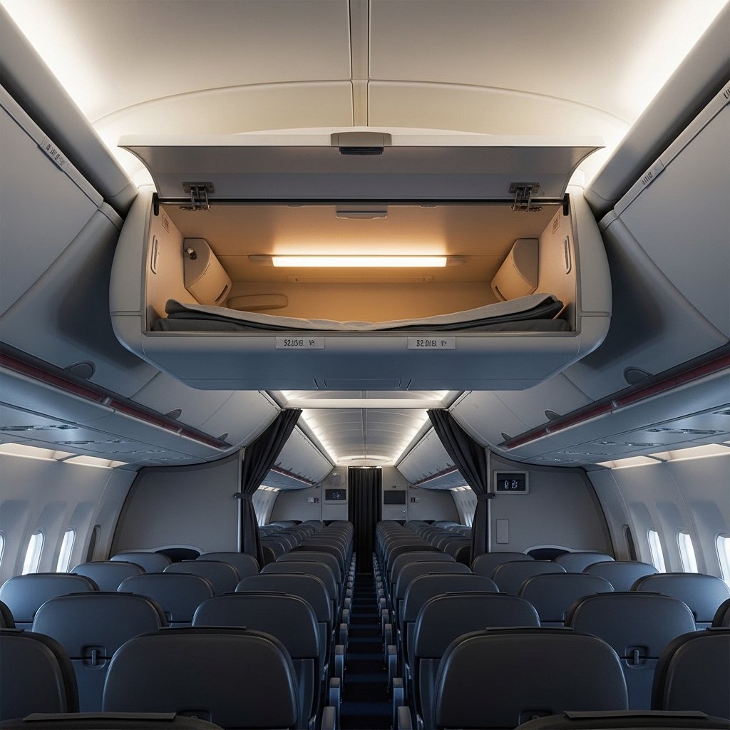 Airlines install hidden crew rest compartments on long-haul aircraft to provide crew members with rest areas above or below the passenger cabin. The space provides two rest areas which flight attendants and pilots use during their breaks.