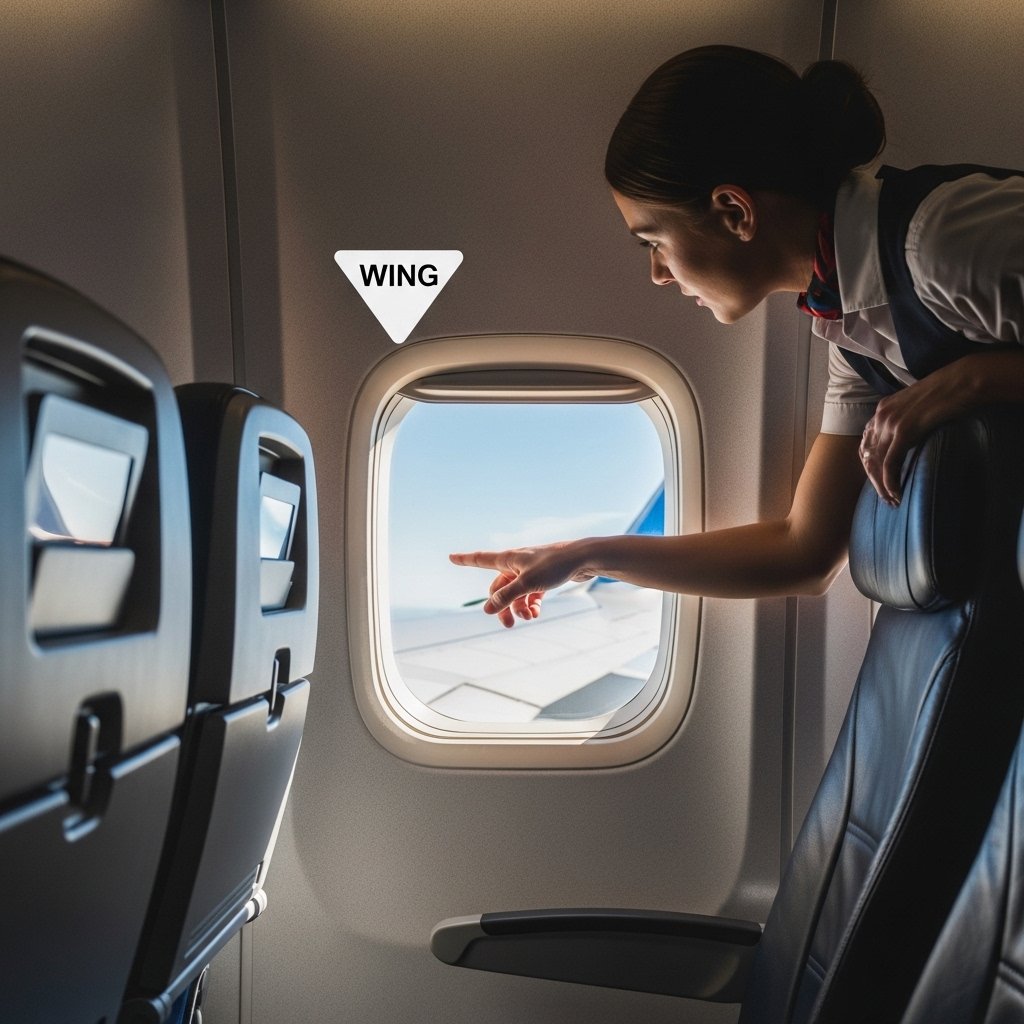 Small triangular markings above some cabin windows help flight attendants quickly locate wings and emergency equipment during inspections.