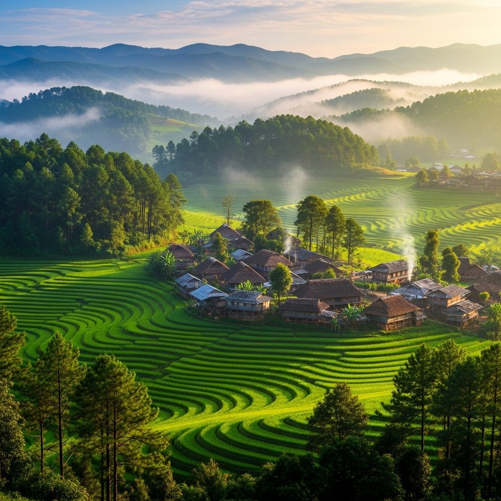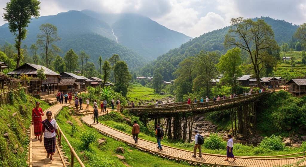 Mawlynnong stands as one of the cleanest villages across Asia which showcases authentic rural life throughout the Indian state of Meghalaya. The visitors experience the village through its bamboo pathways and its living root bridges and its beautiful mountain and waterfall views.