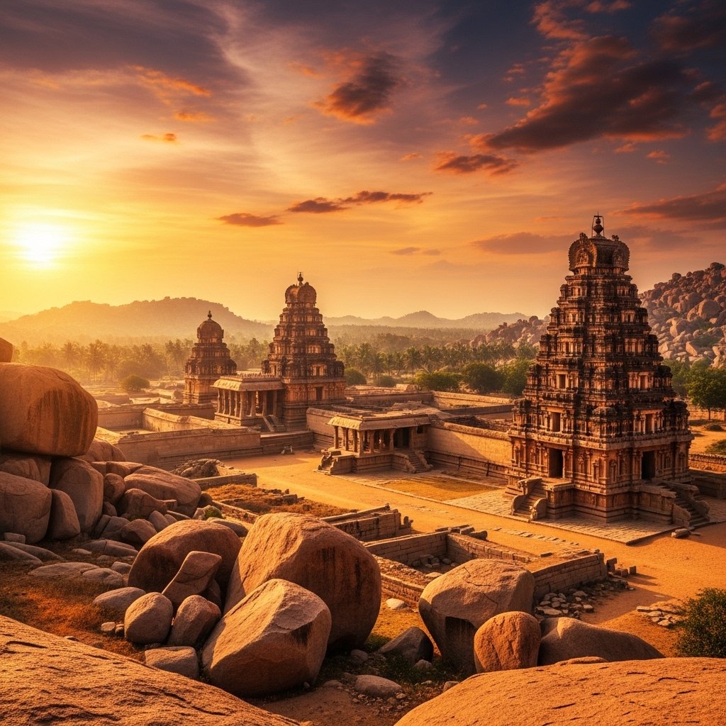 Hampi contains exceptional remnants of the Vijayanagara Empire. The historical site includes enormous stone temples and ancient marketplaces and striking boulder fields.
