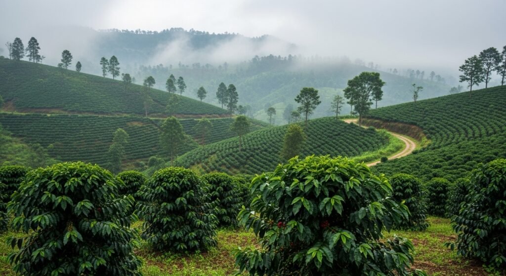 Coorg features green hills and coffee plantations which exist under constant misty weather conditions. The tranquil atmosphere together with picturesque landscapes creates an experience which reminds travelers of European rural regions.