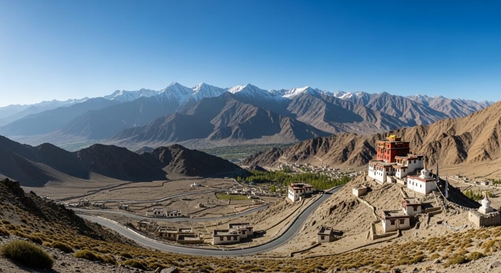 Leh-Ladakh presents visitors with its vast open spaces which include elevated peaks and unbroken atmospheric visibility. Central Asian regions share similarities with the present area. The area develops a unique atmosphere through its combination of monasteries and quiet roads and distinct cultural elements.
