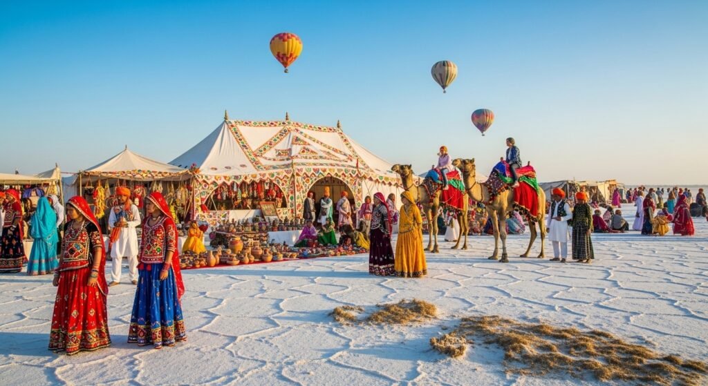 The Rann of Kutch exists as an extensive white desert which exhibits a distinct appearance that sets it apart from other Indian regions. The Rann festival transforms the area into a vibrant and colorful space which provides visitors with an authentic cultural experience.