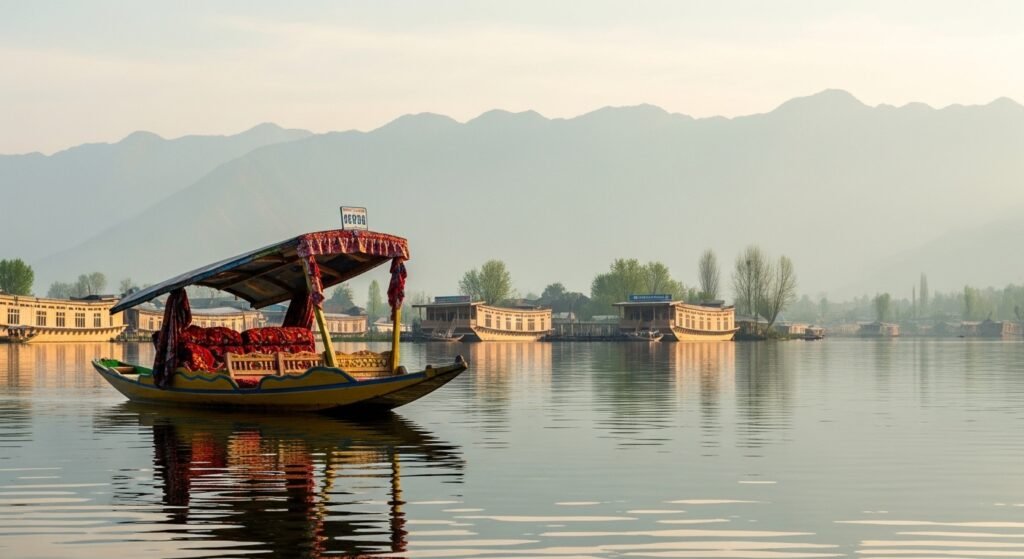 Dal Lake serves as a popular destination because of its houseboat accommodations and shikara boat excursions. The tranquil waters of the lake create a picturesque scene which reflects both mountains and gardens.