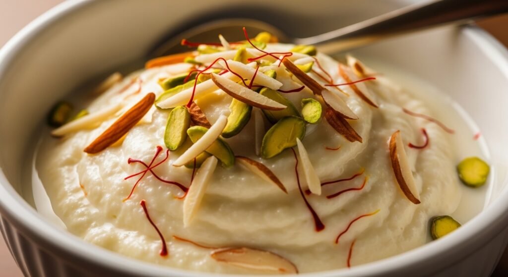 Made from strained yogurt, Shrikhand is light yet flavorful. Sweetened and infused with saffron and cardamom, it has a creamy texture that pairs beautifully with festive meals or simple gatherings.