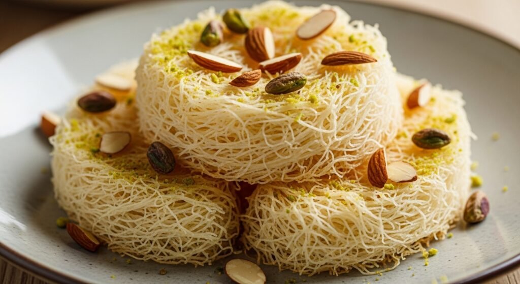 Delicate and flaky, Sutarfeni resembles fine threads of sweetness. It is typically flavored with cardamom and garnished with nuts, offering a unique texture that melts effortlessly in the mouth.