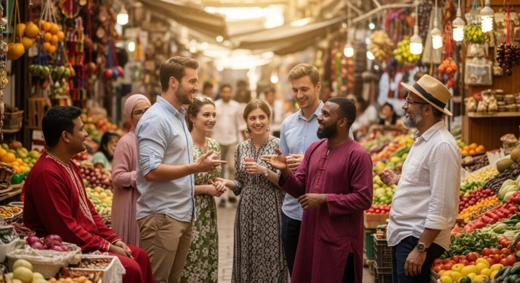 The absence of local word knowledge makes it hard to communicate with others. The use of basic greetings together with simple questions enables people to interact with local residents throughout their daily activities.