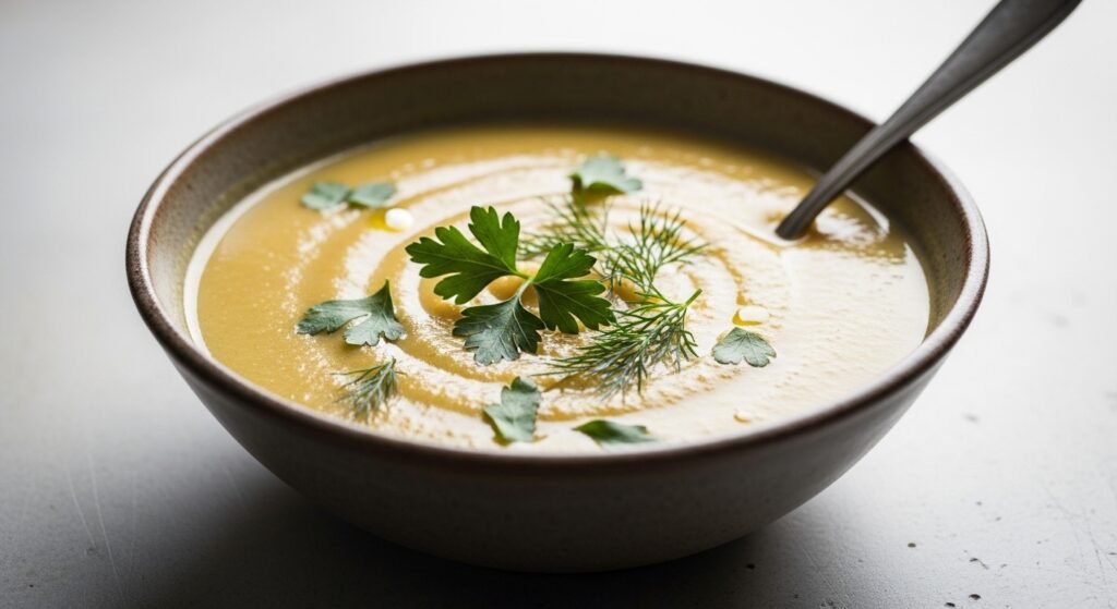 A warm soup made with blended chickpeas, garlic, and vegetables offers comfort and nutrition. It is easy to prepare in batches and store. One bowl delivers a smooth texture with high protein content, making it suitable for light dinners or quick evening meals.