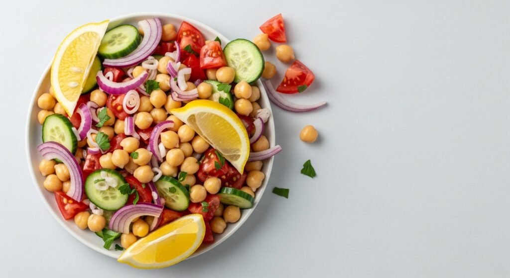 This no-cook option works well for rushed mornings or light dinners. Toss boiled chana with chopped onions, tomatoes, cucumber, and lemon juice. Add salt and roasted cumin powder for flavor. It delivers around 14 grams of protein per cup while keeping preparation under 10 minutes.