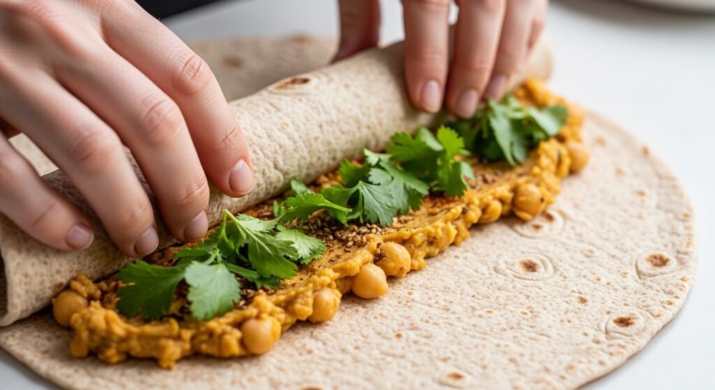 This option turns chana into a portable meal. Mash boiled chickpeas slightly, mix with yogurt, spices, and herbs, then roll into whole wheat wraps. Each wrap provides a balanced mix of protein and carbs, making it ideal for office lunches or travel days.