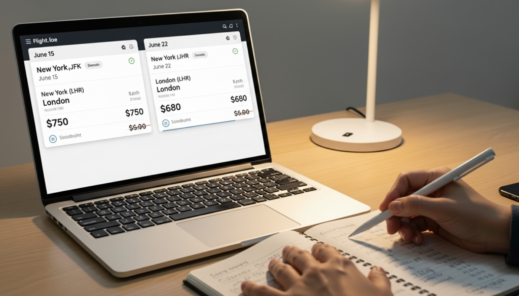 Airfare prices vary significantly between different days. Flexible date search tools enable users to check price differences for an entire week and month. The total cost will decrease when you shift your departure or return date by one day.