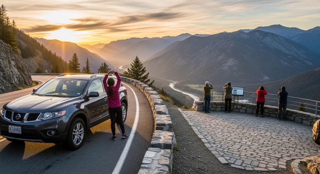 Another exciting reason is that the route has multiple walking paths which lead to waterfalls and viewing points that provide travelers with moderate exercise options. They can access nature without intense hiking while enjoying effortlessly.
